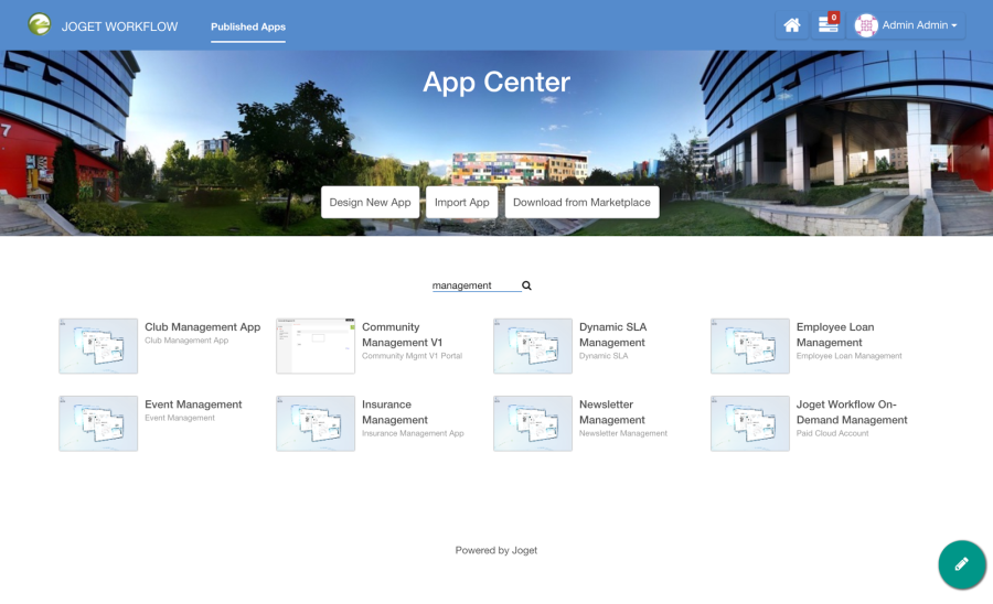 Browse to your Joget Workflow installation at http://VM_EXTERNAL_IP:8080/jw, and get started with 应用和应用中心.