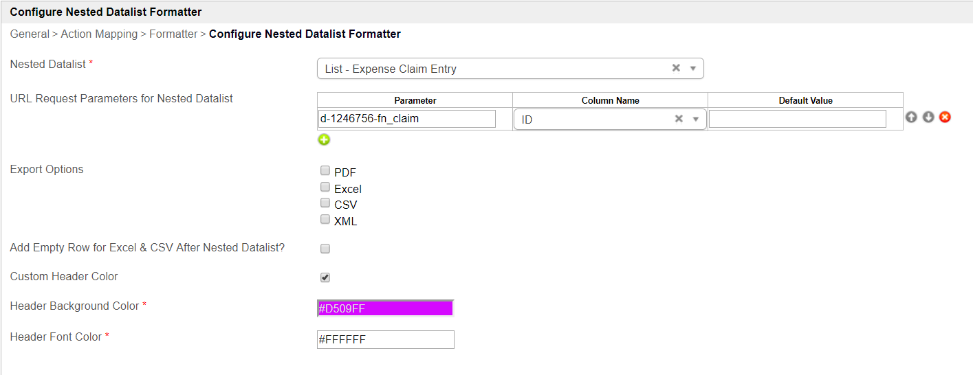 Custom Header ColorCheck this to customize the nested datalist's header color.