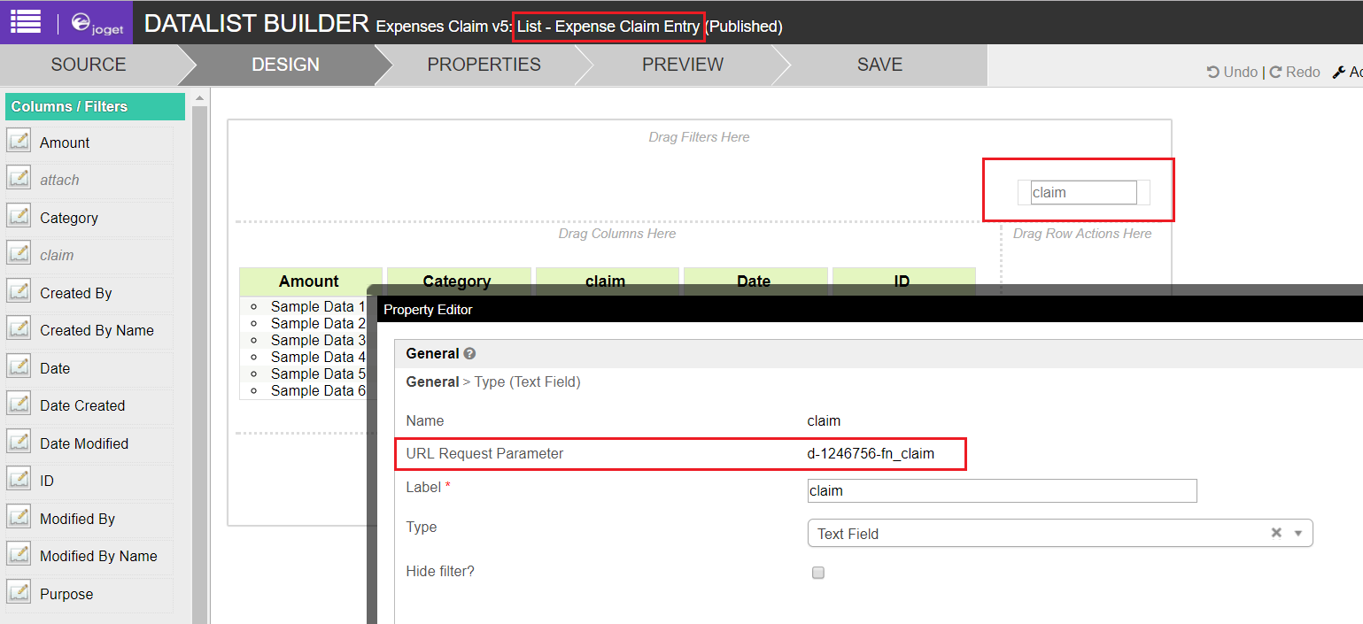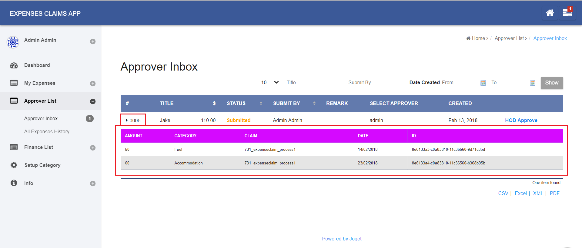 Figure 2: Modified sample app - Expense Claim, example of Nested Datalist Formatter used in Approver Inbox