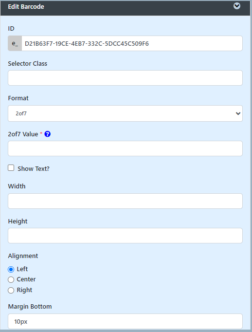 Show Text?If checked, display barcode value as text on Barcode.