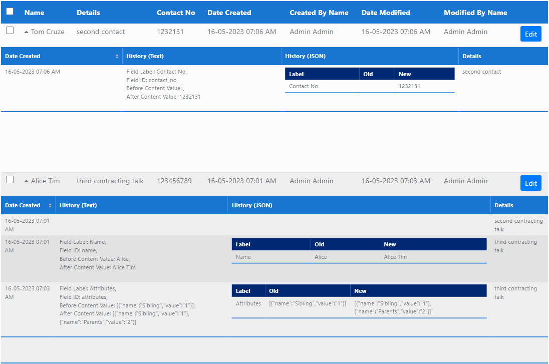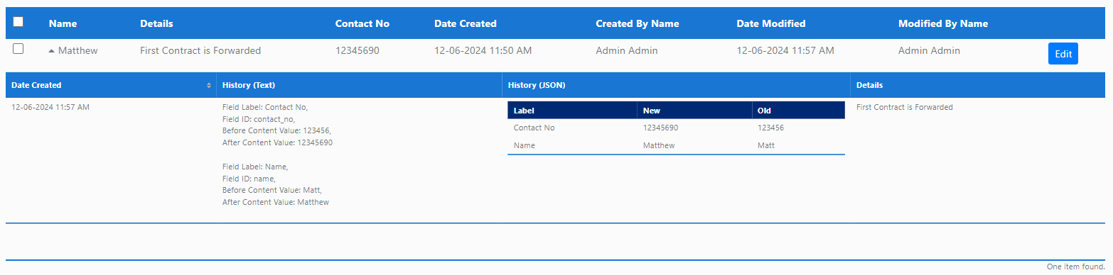 After saving, you can click on the arrow beside the Name value and the Trail data list will drop down. Though there will be no value since there are no changes made yet in the data.