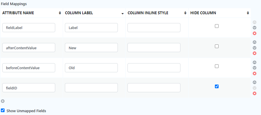 Show Unmapped Fields | Click the checkbox to show unmapped fields. |