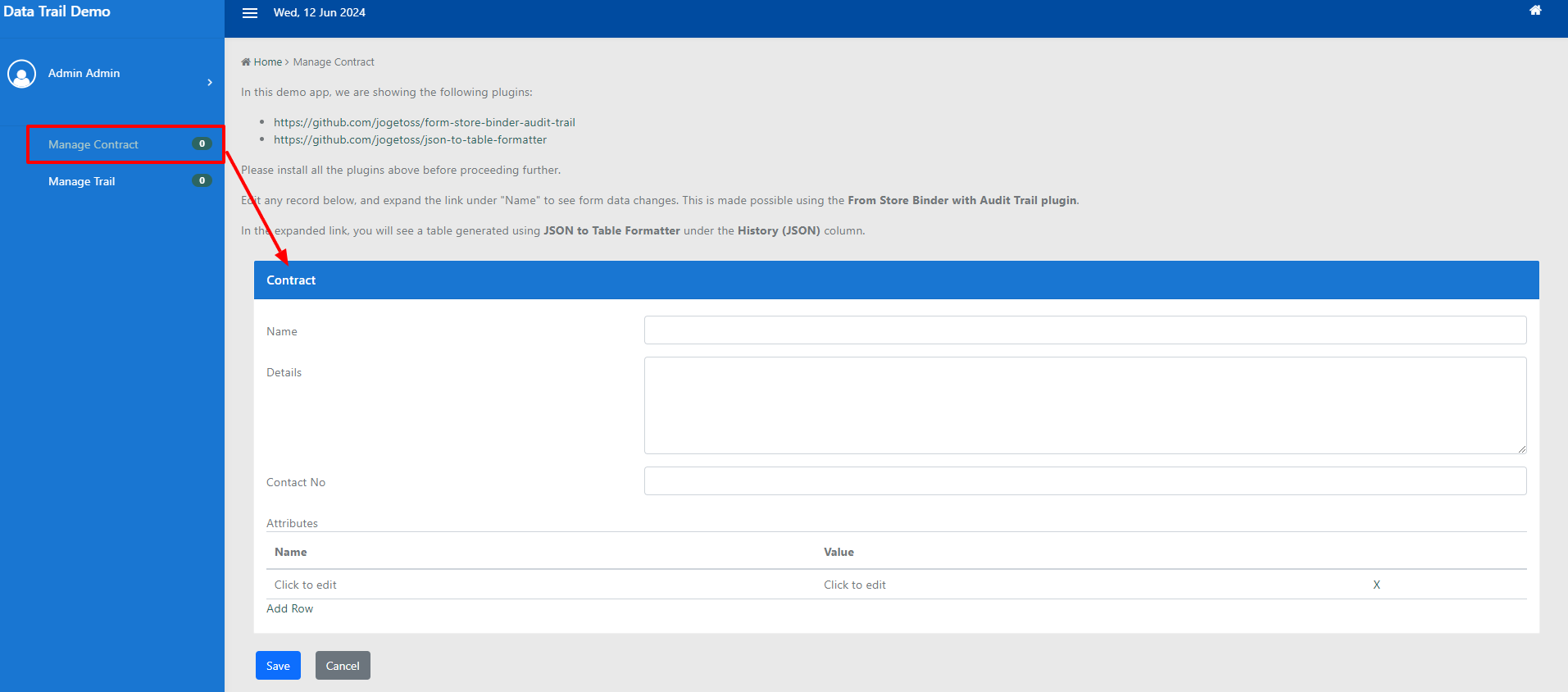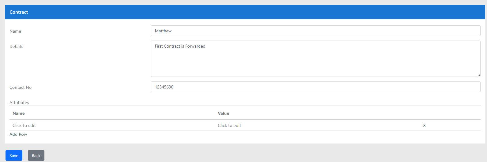In runtime, click on the Manage Contract > New which is the main form and fill in the new details.