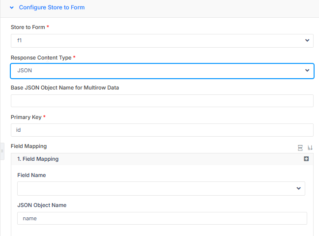 Store to Form | Select the form you want to store the data in. | ||||