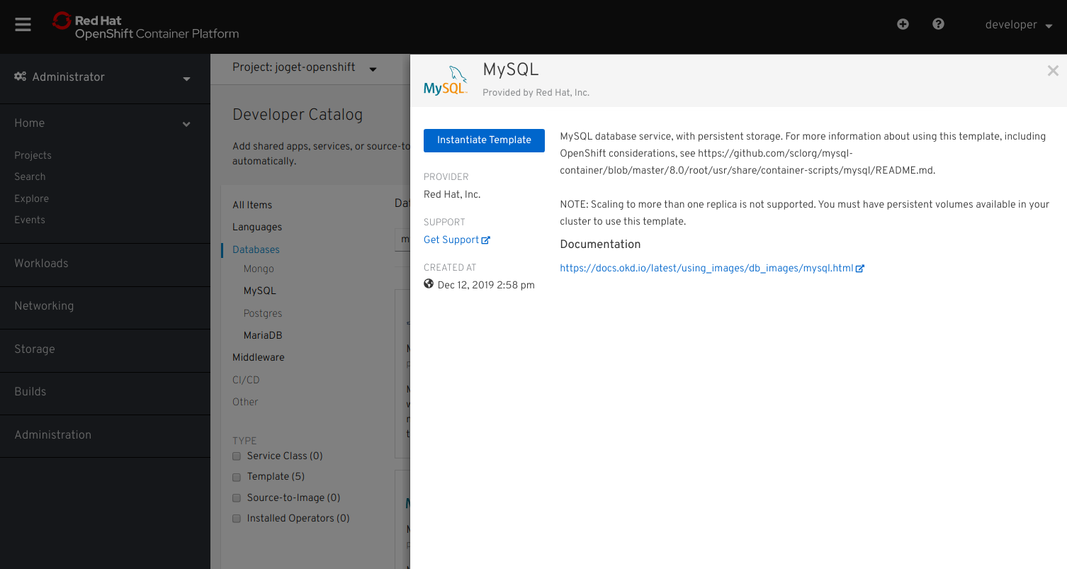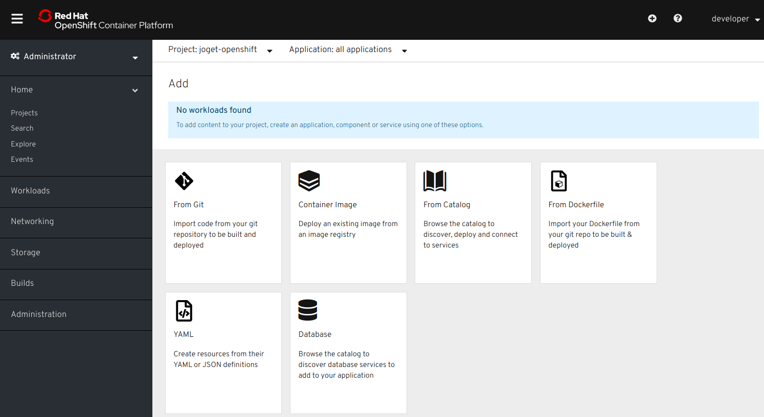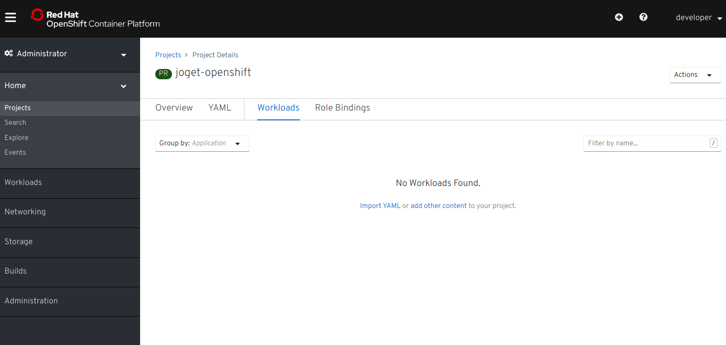 Now that the Joget Operator has been installed, login to the OpenShift console as a normal user.