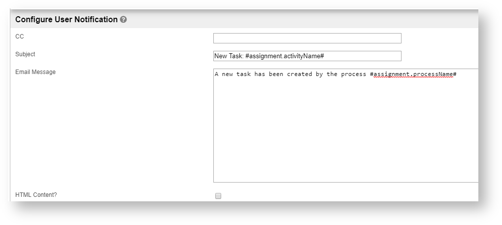 | Email Message | Generic email message to be used across all newly created assignment. You can use the special hash variable #assignment.link# to anchor the task hyperlink at a specified line in your email message. By default, the task hyperlink will appear at the bottom of the email message. | ||