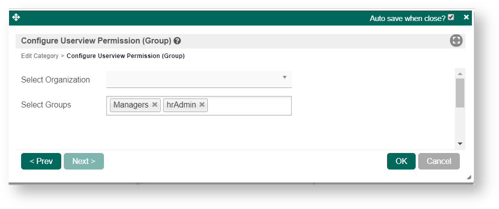 | Group Permission checks if the user currently logged in belongs to the selected group before letting the user view the screen. |