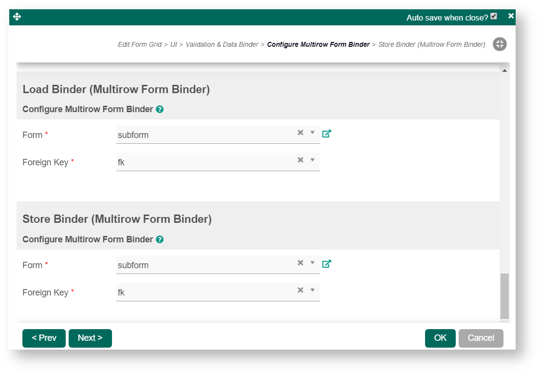 Form Grid Properties - Load & Store Binder - Multirow Form Binder