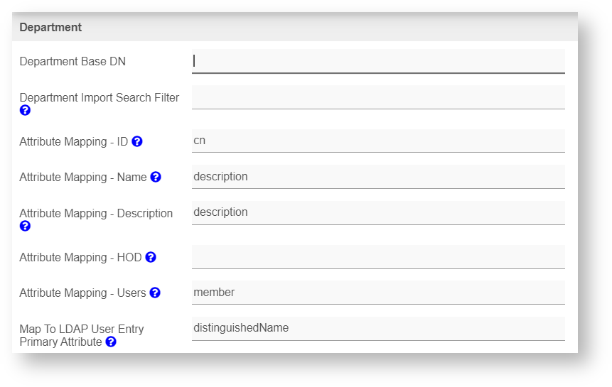 Map To LDAP Department Entry Primary Attribute | dn | ||||||
