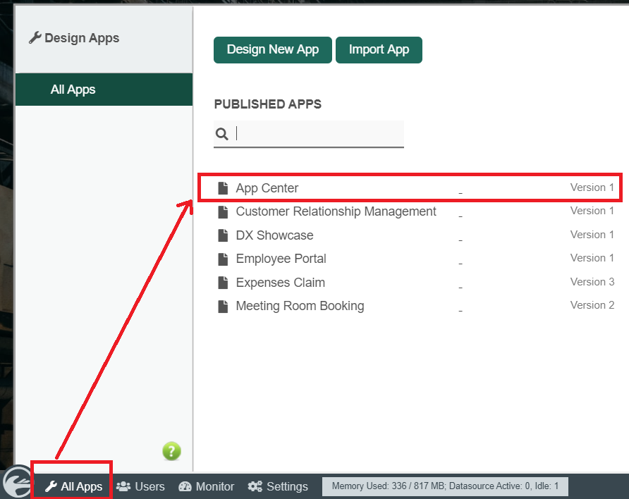 1. In order to edit it, as a Joget administrator, simply navigate to "All Apps" in the admin bar, then click on the "App Center" app.