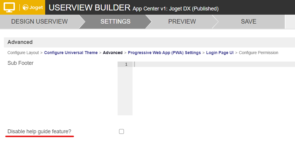 4. Scroll down to the bottom of the page, and check the "Disable help guide feature?" option.