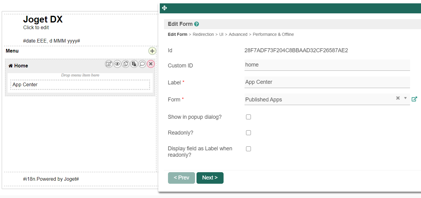 By defining the content of the form, we can alter the content of the current app center. Simply click on the navigation icon beside the selected form to edit the form.