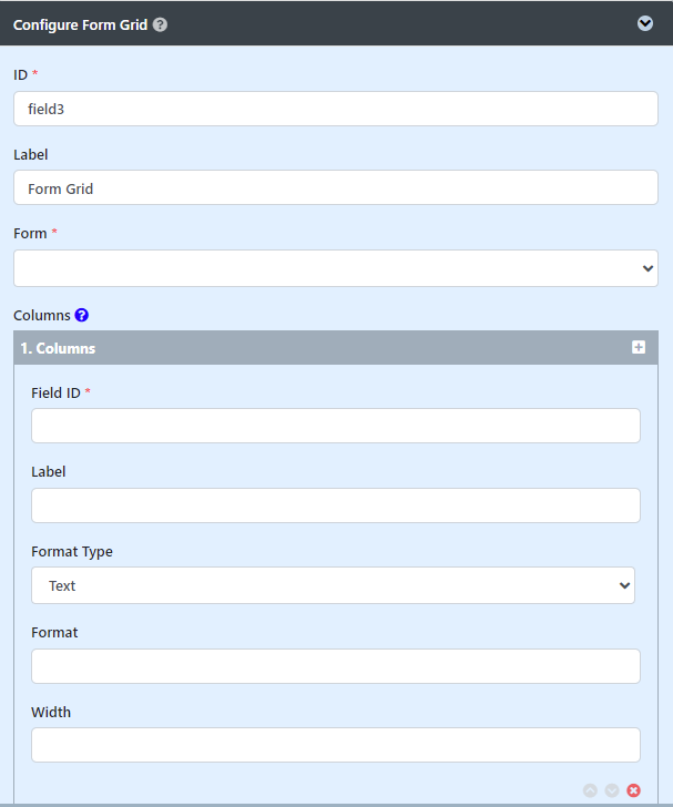 Columns | The columns defined here must be correspondent to the Form chosen above.