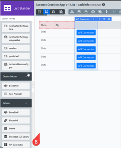 - In the Design tab, drag and drop the API Connector to the list or canvas.