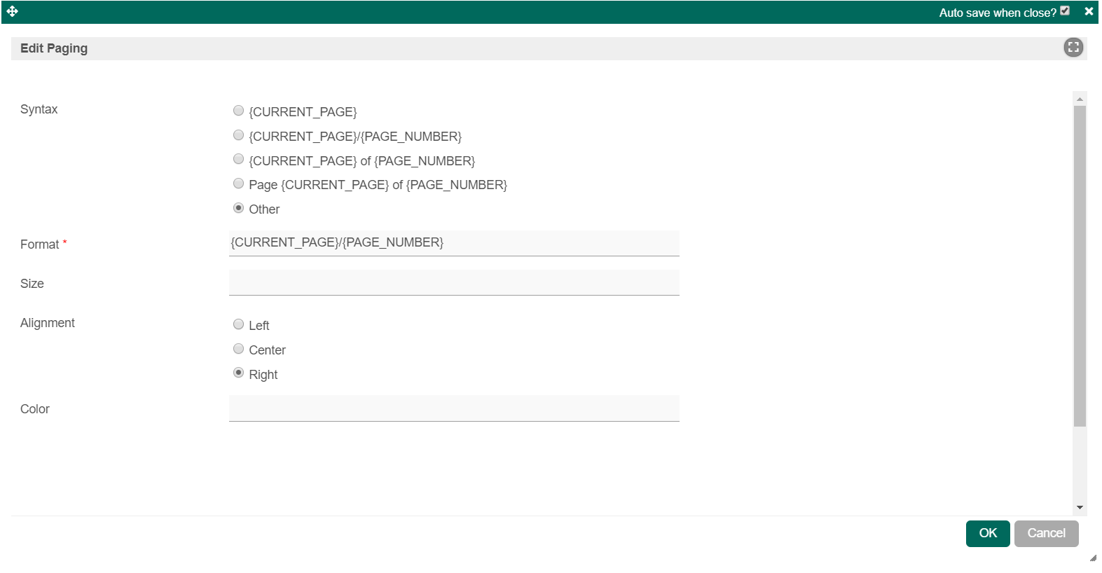 Format | When Syntax is set to "Other", this option will show up. |