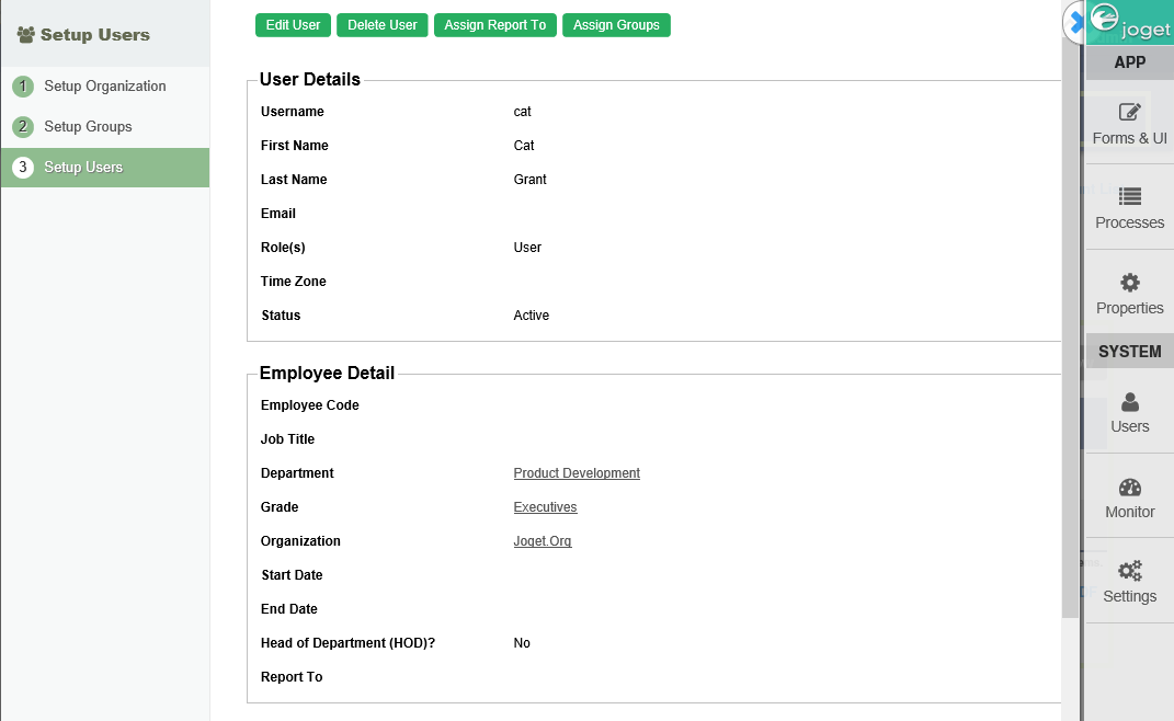 Figure 2: Setup Users - Setup Users - Viewing a User
