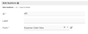 Store Binder | By default, the Workflow Form Binder plugin is used for loading and storage of form data in the subform, you may override it with other plugins. See the list of available Form Binder. |