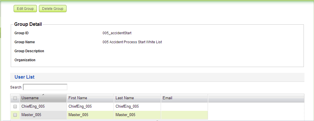 3- Created the users for all of my departments, creating groups when I had to map more than one participant in my Process Start White Lists.