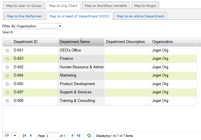 Map to a Head of Department (HOD) allows one to choose a head of department to be assigned.