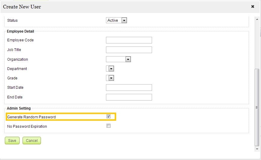 - Admin also has an option to check "No password Expiration" in case he/she doesn't want their user's password to expire.