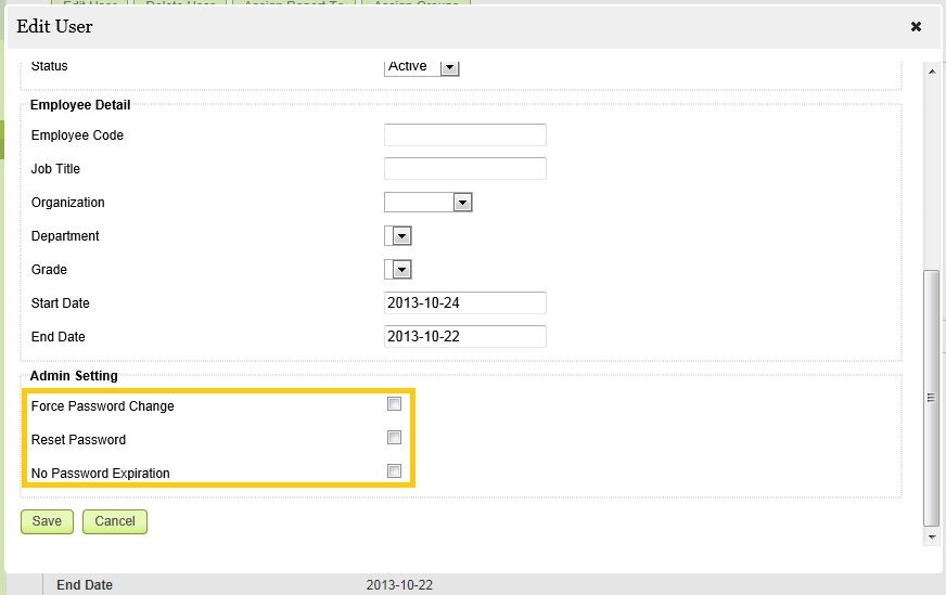 - Admin can also force user to change his password. Check "Force Password Change" to do that.