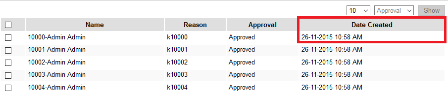 Figure 5: Datalist Builder list view with Date Formatter enabled on Date Created column