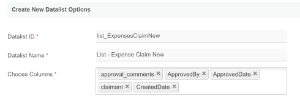 Choose Columns | Select Columns to be displayed in Datalist. AutoComplete enabled. Type column name to display filtered selection. |