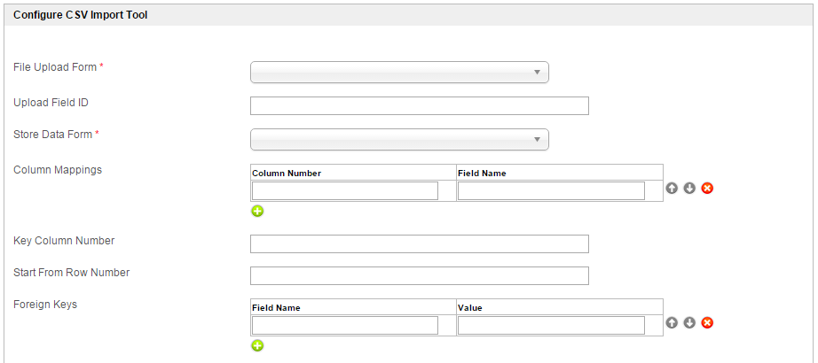 CSV Import Tool enables a user to import bulk data into a specific form's table by retrieving the CSV file from a form field and doing a simple column-to-field mapping.