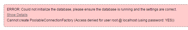 You may get the error above if Joget fails to connect to the database due to failed authentication. Check your database connection parameters and try again.