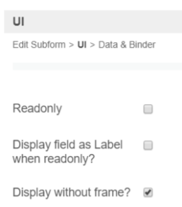 Display without frame? | Decorator option. Removes default styling applied to SubForm when checked. |