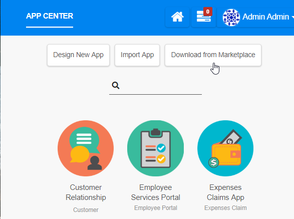 3. Use the search box to quickly find an app. For example, type claim to look for the sample HR Expenses Claim App