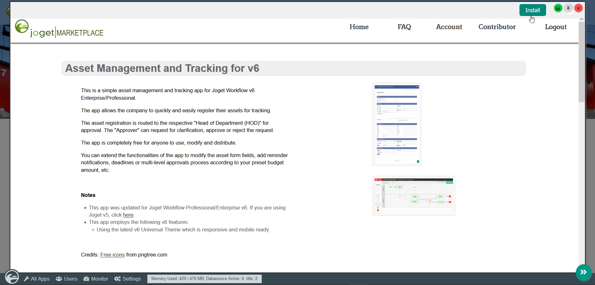 2. App that is found in the Joget Marketplace can be installed seamlessly into your copy of Joget.