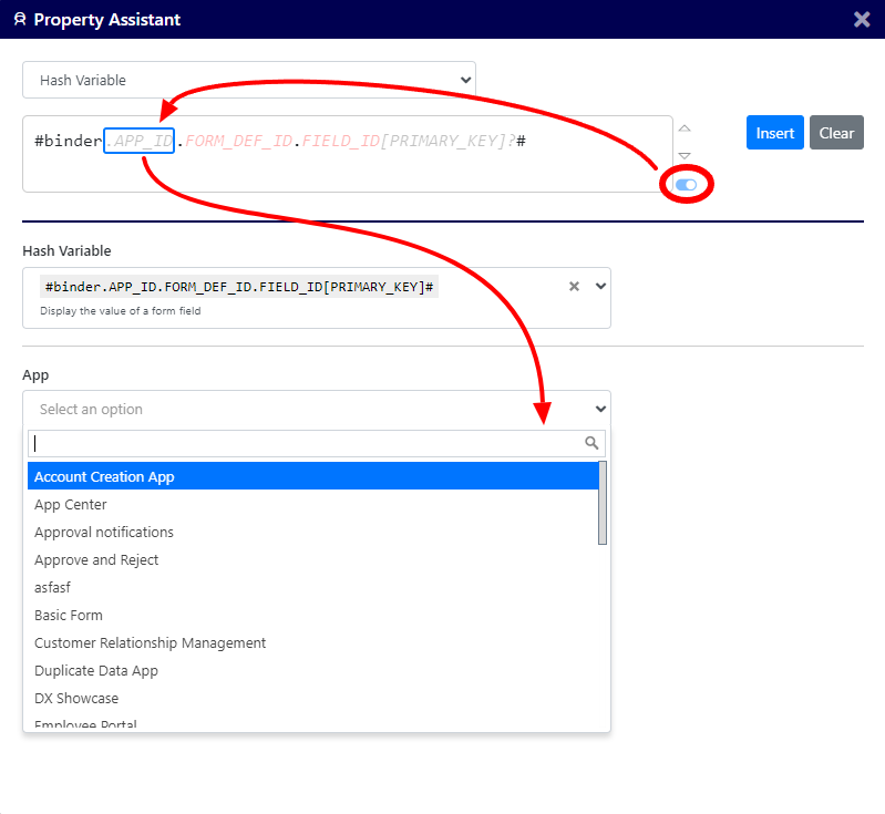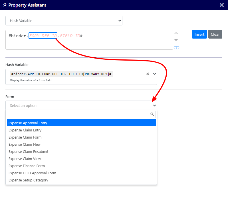 The Property Assistant is a new feature in Joget DX 8, that allows you to insert Hash Variables, Regular Expressions and URLs in any form element, UI element or list.