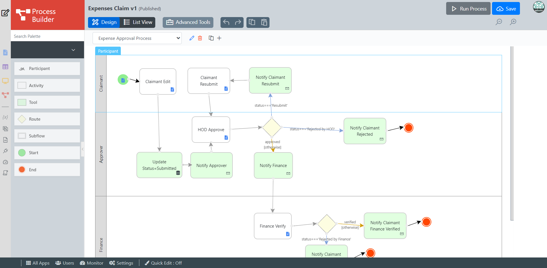 2. Log in as admin and click on the pencil icon on the Expenses Claim to open the Design App. (see Figure 2)