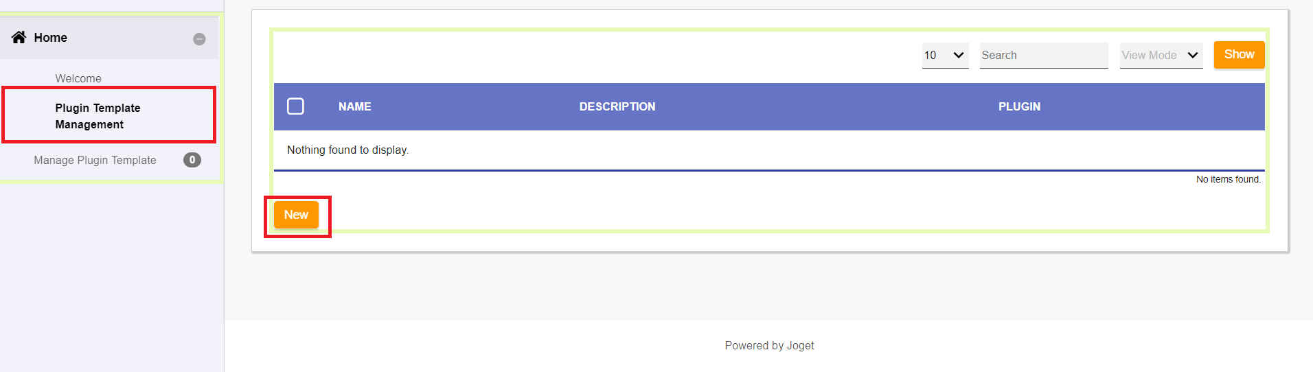1. Launch the app "Plugin Template Demo" and create a new template again on the Plugin Template Management Page by clicking the "New" button. (See Figure 1)