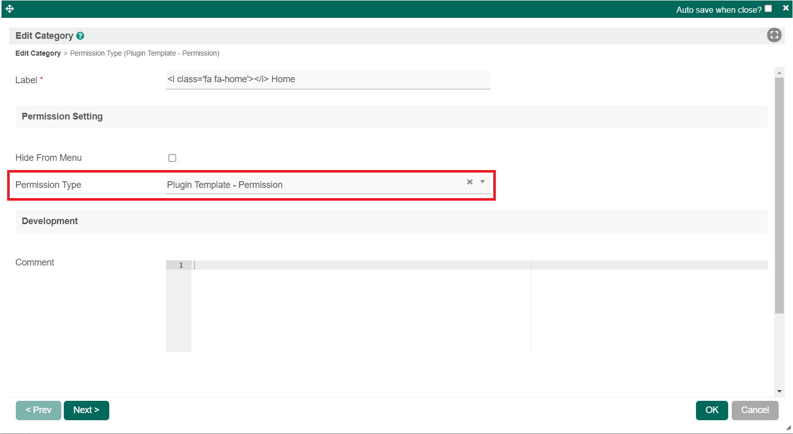 Figure 7: Choose Plugin Template - Permission for the "Permission" field