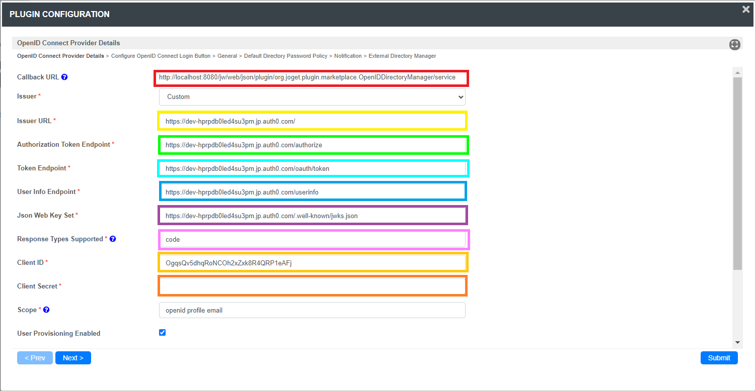 - From the Application, copy the relevant values and paste them into the respective fields in Joget OpenID Connect Manager Plugin. Please refer to Figure 1 & Figure 3.