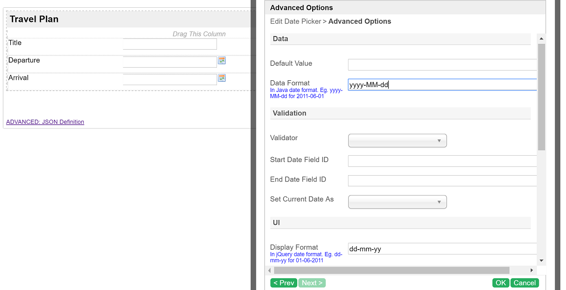 Based on the configurations above on Date Picker, when one picks a date, (e.g. June 2, 2016), it will display 02-06-2016 to the user. This is because the Display Format is set to dd-mm-yy.