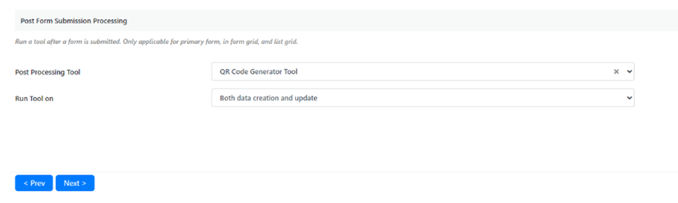 1. Set its Post Processing Tool to QR Code Generator Tool