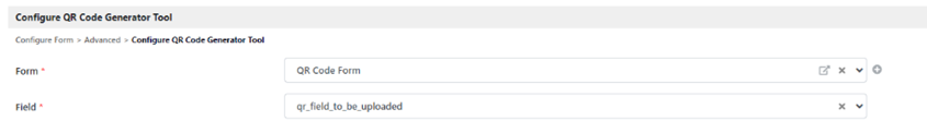 1. Configure QR Code Generator Tool to the previous form and fill in the Field with the File Upload element's Field ID.