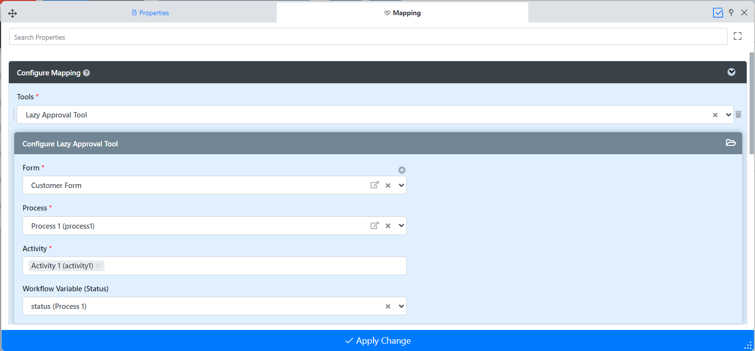 This is what the configuration of the Lazy Approval Tool looks like in the process.