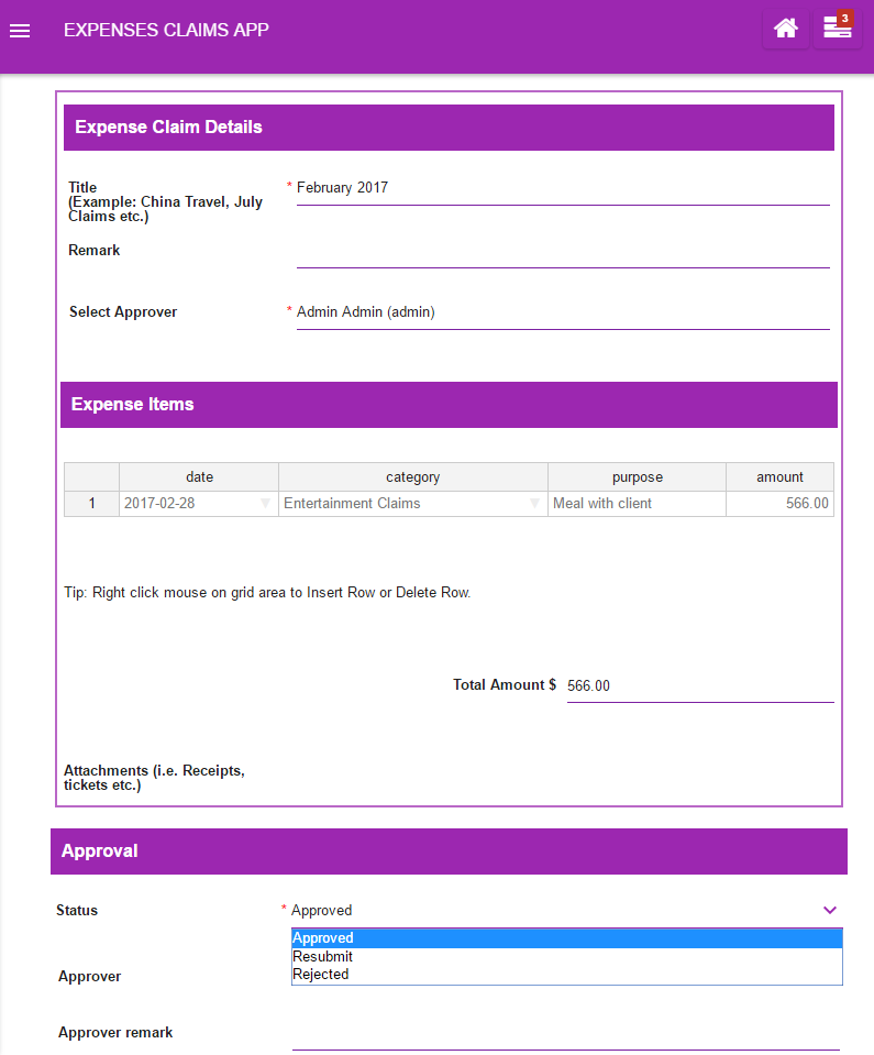 - Forms are used to capture and present information. Many form elements are available, ranging from a simple textfield to more complex types such as form grids. In the sample HR Expenses Claim App, login as a normal employee (Cat) and click on the New Expenses Claim to see an expenses claim form. Fill up the form and click on Complete to submit.