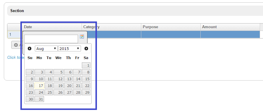 Figure 3: Screenshot highlighting Advanced Grid on Date Picker element in Form Builder