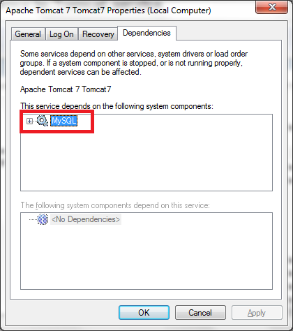 将 MySQL 服务设为 Tomcat 服务 的依赖