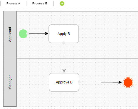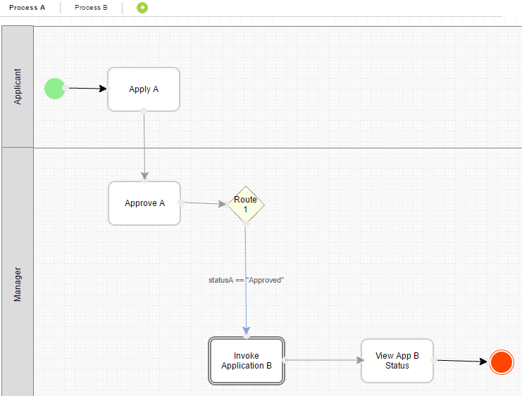 在流程B完成“批准B”后,流程B的工作流程变量(statusB)将返回到流程A(statusA)。