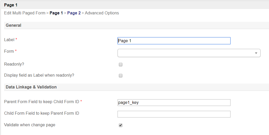 Parent Form Field to keep Child Form ID | 父表单中用于存储页面主键的字段的ID。页面数据将根据从此字段中检索的记录标识进行加载。 |