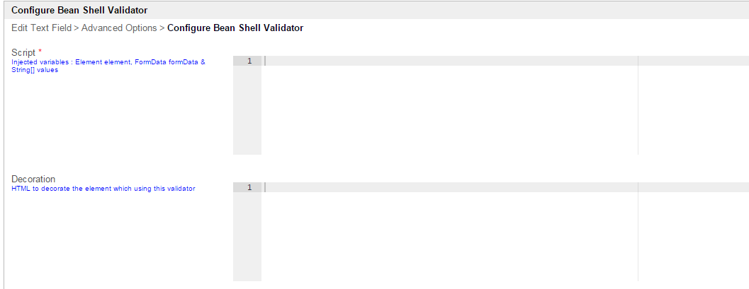 该 Bean Shell 验证器 允许一个编写自定义Java编码来验证表单元素。