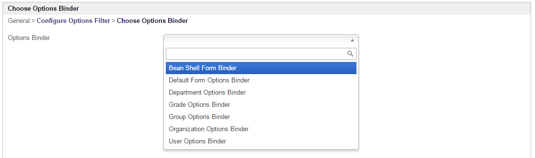 或者选择选项绑定器 | 选项将使用 表单选项绑定器 动态填充。 性能警告 如果您有成千上万的选择选项或从选项绑定器中找到它们,这可能会导致页面加载时间的显着增加。您可以尝试使用下面的分组属性来选择性地加载所需的选项。 |