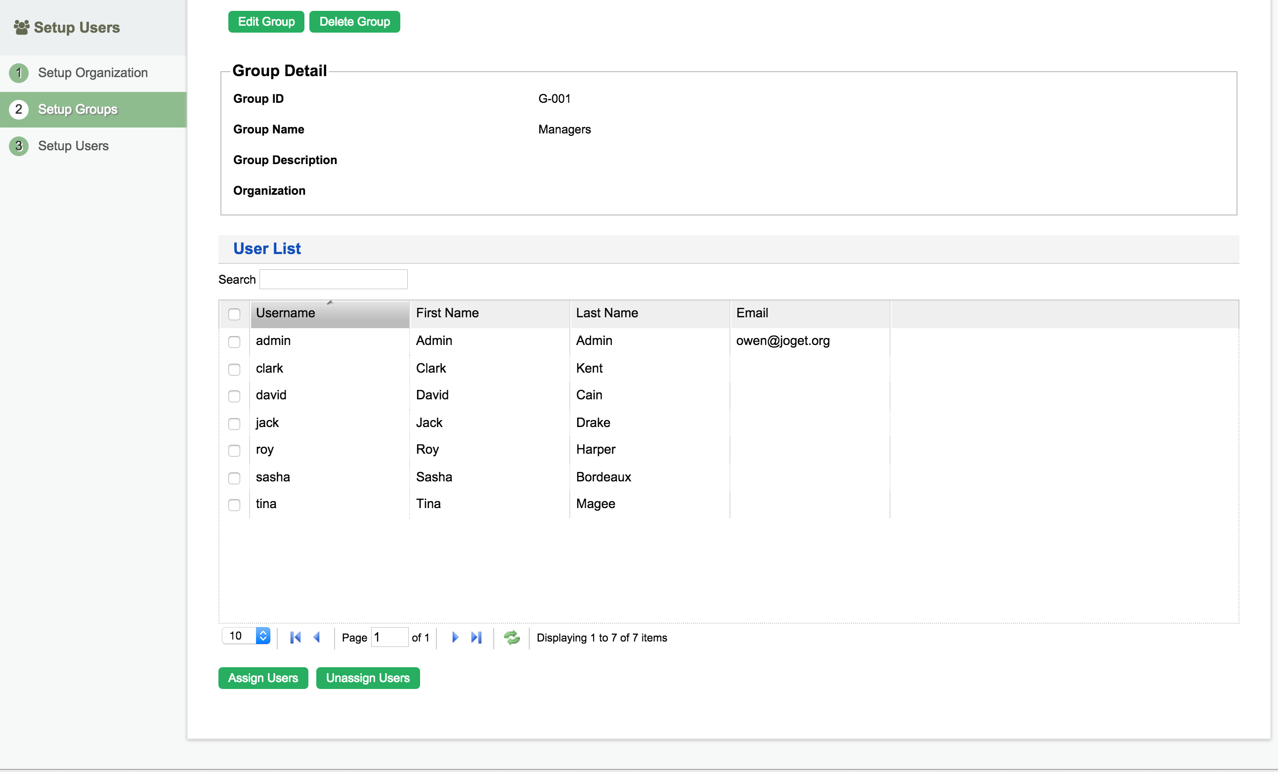 现在,将“admin”用户分配给“Mangers”组。