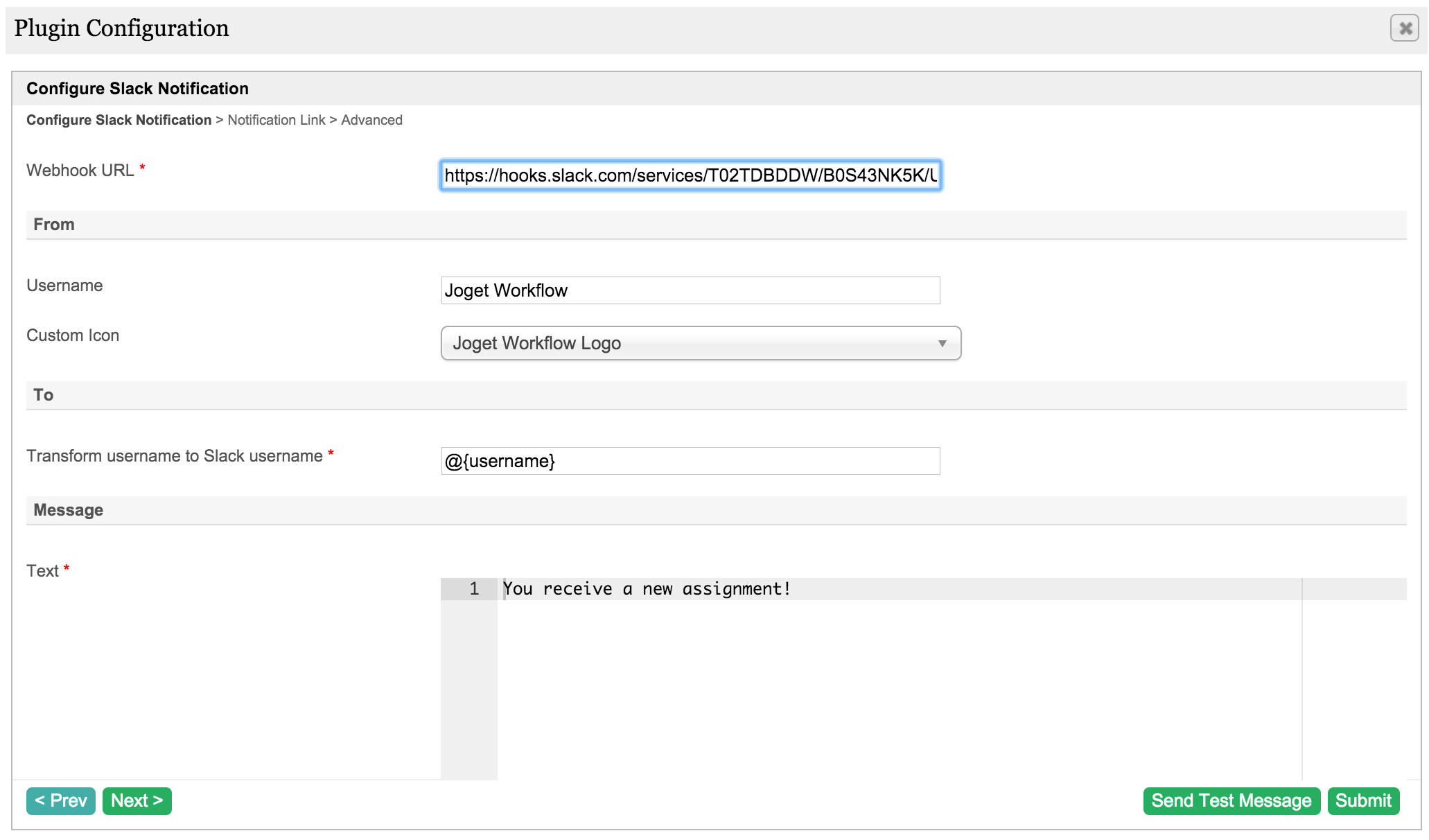 我们希望发送消息给 Slack ,以便在Joget Workflow中为他们创建任务时通知用户。